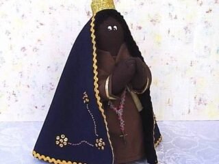 A Bonecas Encantadas criou uma boneca de pano de Nossa Senhora Aparecida para carregar as alianças. “Foi uma coisa diferente que fizemos para uma daminha carregar. Ela levou a boneca e a santa carregou as alianças em suas mãos”, lembrou Karla.