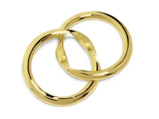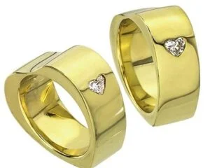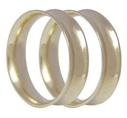 Recomenda-se aliança de casamento larga, desde que tenha os cantos arredondados, pois, exercem menor pressão sobre os dedos.