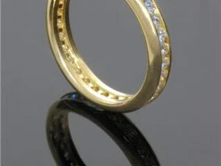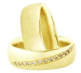 Fica melhor uma aliança com diversas pedras, uma série de pequenas pedras colocadas em linha.