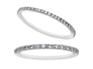 É recomendada a aliança mais achatada. Para dedos compridos, uma aliança com um design diagonal dá a ilusão de uma largura maior.