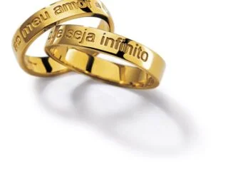 Normalmente as alianças possuem duas marcas na parte interior: a marca do fabricante e a qualidade do material. Estes detalhes podem ser analisados na hora da compra.