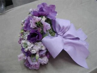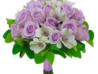 buquê de noiva branco e lilás - formato braçada