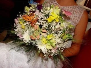 Buquê de noiva! Bouquet é uma palavra francesa que simboliza a alegria da vida e a fertilidade. Na Grécia Antiga, entre 1.100 e 146 a.C., as flores eram usadas como símbolo de proteção e reprodução por representarem a germinação e o crescimento das plantas. Por isso as noivas carregam o buquê de flores durante a cerimônia de casamento.