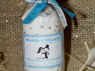“Fica lindíssimo aquelas garrafinhas com areia e o nome dos noivos. Garrafinhas de água, também são muito usadas, porta-retrato em madeira ou pátina, contendo uma mensagem de agradecimento como lembrancinha”, concluíram Carolina e Patrícia.