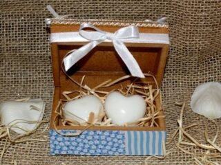 O tradicional bem-casado é recomendado por todos os profissionais e não pode faltar como lembrancinha. Ele pode ter embalagens voltadas para o tema com acabamento de conchinhas ou estrelas, papéis temáticos estampados, amarrados com materiais rústicos ou até mesmo envolvidos em palha.