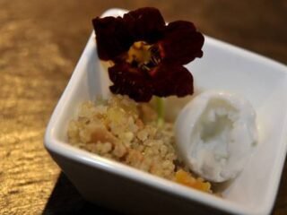 Para a noite, a sugestão do chef é um menu degustação com bastante opções para uma festa mais dinâmica e divertida: miniaturas de pratos clássicos e modernos servidos em diferentes recipientes, taças, copinhos, mini-bowls, panelinhas e colheres de porcelana. A sobremesa continua no mesmo ritmo com mini-porções das receitas preferidas dos noivos. E para finalizar, um café expresso.