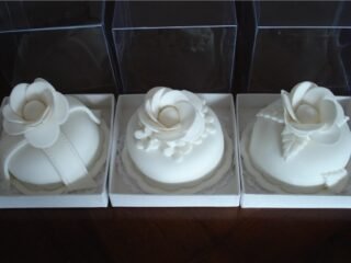 “Os tradicionais bem-casados embrulhados no papel são uma boa pedida. Dê seu toque final colocando uma flor de biscuit ou amarre com fita de tecido com estampa florida, que é bem suave. Ficará lindo”, palpitou a cerimonialista Masé.