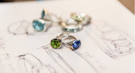 “Existe uma técnica chamada radiestesia que possui como objetivo medir o campo energético de ambientes e objetos utilizando instrumentos como os pêndulos. Na radiestesia se usa uma mesa com diversas cartelas onde são disponibilizados desenhos e estilos de anéis de noivado e de alianças para fazer uma medição da energia. Com o pêndulo posicionado, faz-se as perguntas. O designer de joias se direciona para os materiais e para as pedras preciosas que serão utilizados na fabricação das alianças”, esclarece Raquel.