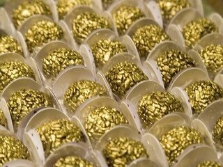 As embalagens e forminhas para os docinhos são tão importantes como a própria gostosura. São inúmeras opções de cores, tecidos e estampas oferecidas pelas lojas: tecidos de Poá, Piquet, voil, cetim, algodão, papel, veludo, organdi, laise, tela e organza com detalhes em renda, strass, fita, pérolas, contas e até aplicações de cristais.