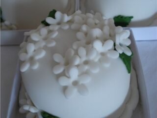 Os mini bolos ou miniaturas confeitadas dos bolos de casamento, ajudam a compor a mesa principal e a mesa de doces, bem como também podem ser entregues como lembranças da festa. Elaborados com uma temática escolhida pelo casal ou inspirados nas cores e decoração da recepção, eles podem ter diferentes tamanhos e formatos.