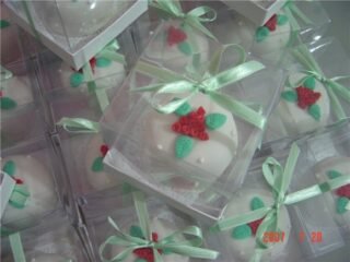 “Caso ele seja dado como lembrancinha, deve ser bem pequeno. Se for usado para enfeitar as mesas unitariamente ou entregue como presente aos noivos, padrinhos ou pais, pode ser maior”, recomendou a boleira Andrea Kulikovsky, da Speciarias.